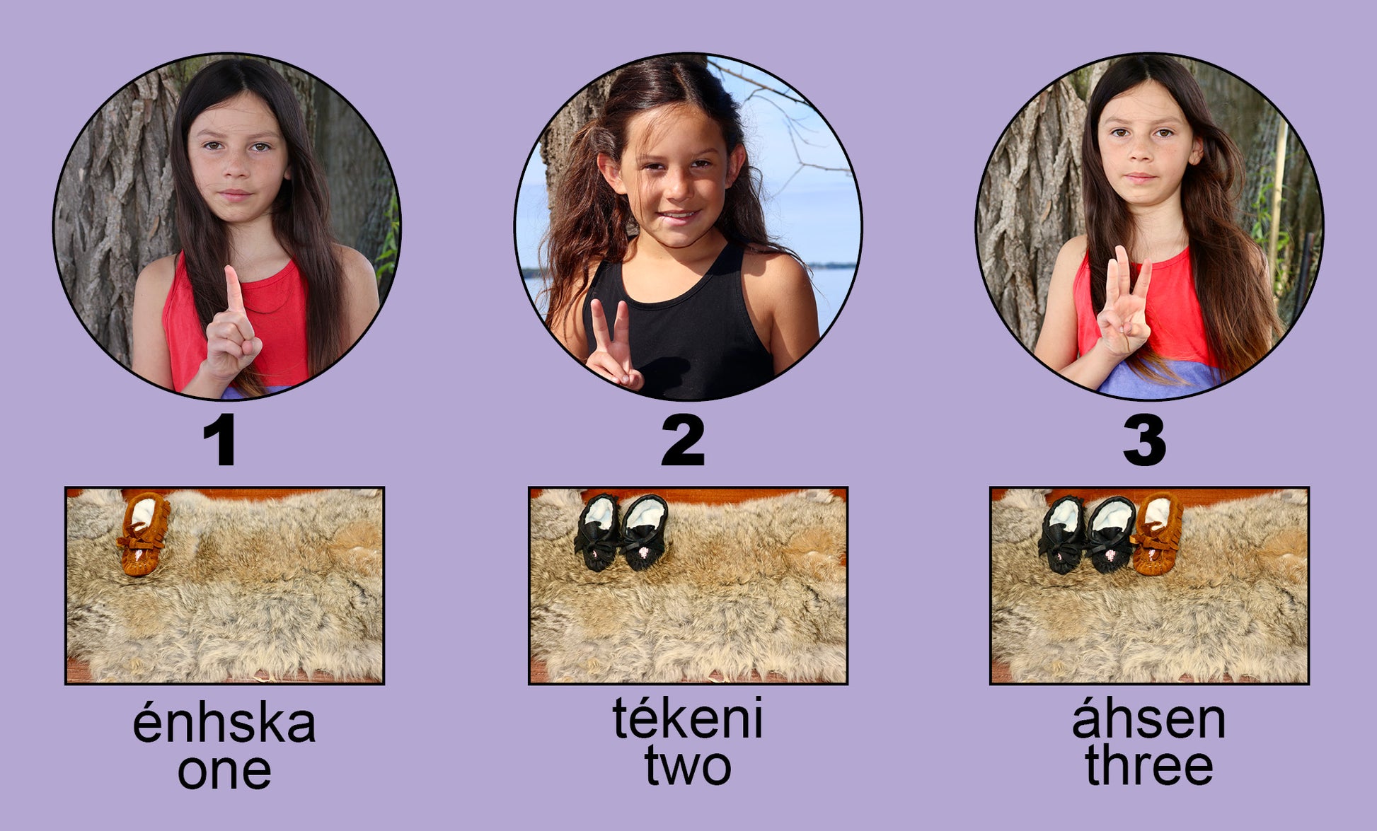Tyowennatyerénhton - First Words is an introductory Kanyen’kéha (Mohawk) vocabulary book and photo book with English translations. Featuring photographs from the land, families, teachers and their students can learn numbers, colours, feelings, traditional foods and other aspects of the natural world, important to the Haudenosaunee.